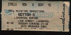 Yes it's true... Me and my mate Liam went to see Bottom Live 2003 on the 25th of November 2003 at the Empire Theatre, Liverpool. We got there about half an hour early to get into our seats. The whole place was packed. I thought that the show was so funny, particularly Rik Mayall's impressions of scousers. I tried to get loads of photos, but kept on being told off by some usher guy, who looked like a penguin. I'm definitely gonna buy the DVD. We waited for about an hour after the show, only to find out that Rik and Aide had snuck out without signing a single autograph.